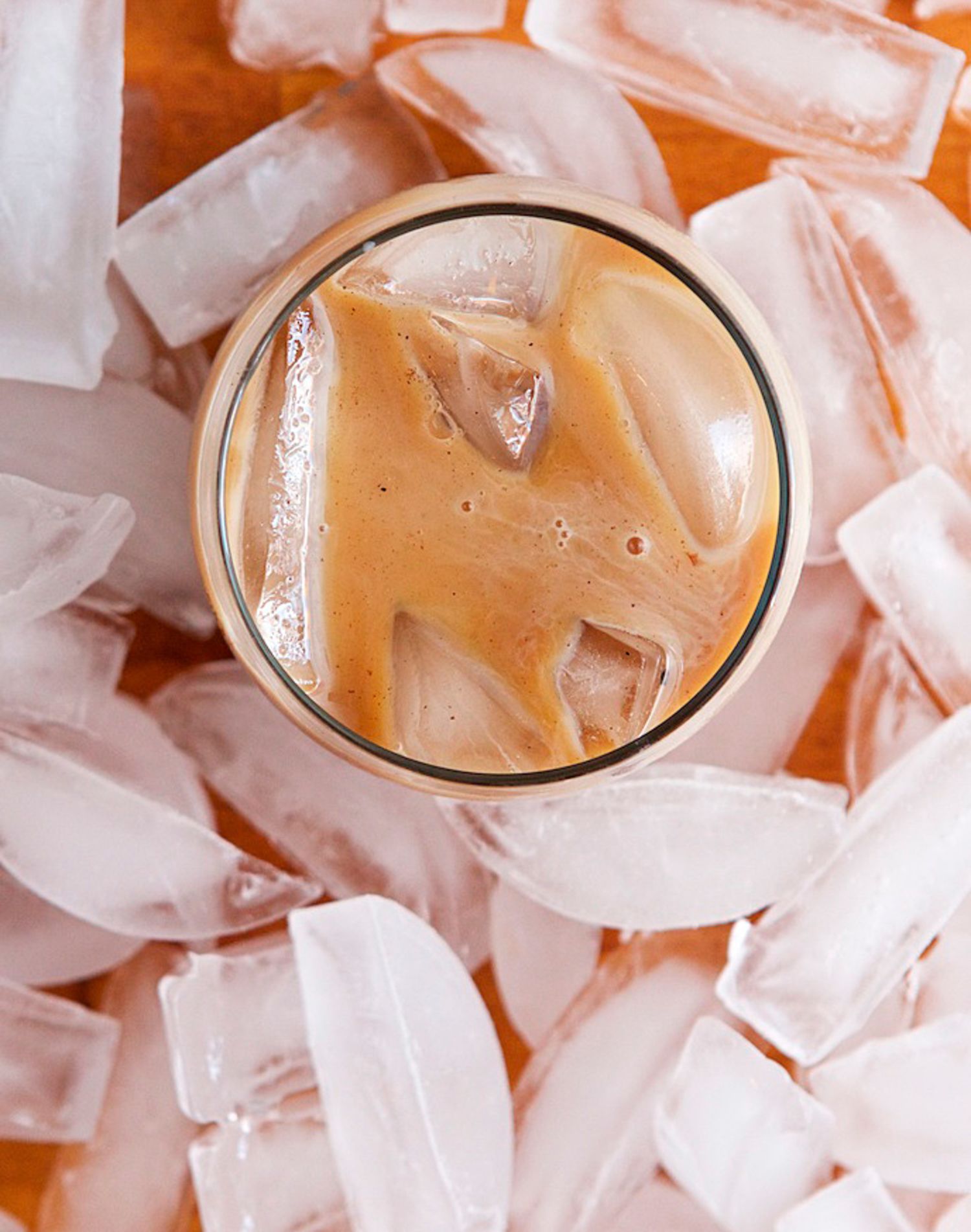 Japanese iced coffee is obtained by pouring hot coffee over ice, allowing the boiling coffee to cool once in contact with ice.